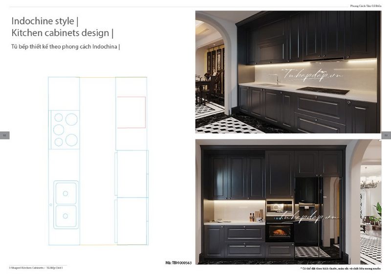 Tủ bếp phong cách tân cổ điển lạ mắt với những đường cong hay những họa tiết chạm trổ tinh tế tạo nên không gian nấu nướng sang trọng đồng thời thể hiện được gu thẩm mỹ của gia chủ
