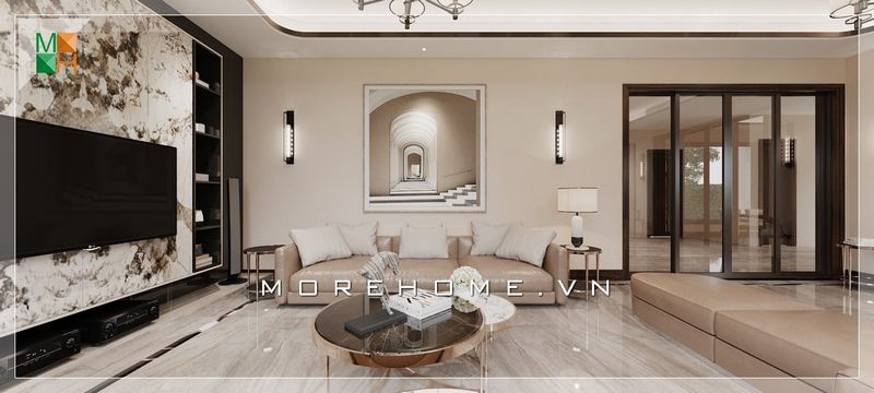 Mẫu thiết kế không gian phòng khách biệt thự theo phong cách hiện đại đẹp cuốn hút vạn người mê.
