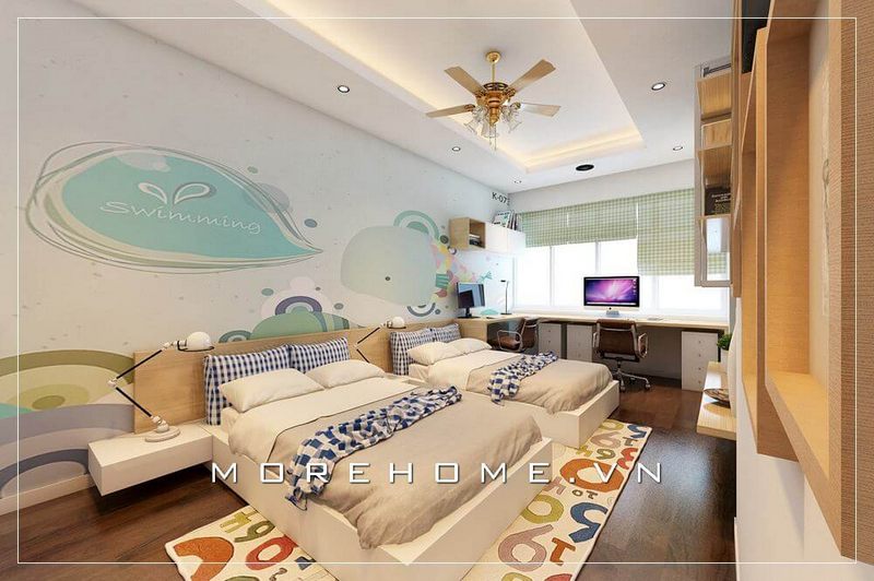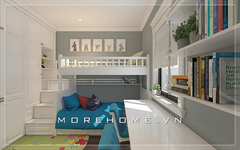 Thiết kế giường tầng trẻ em hiện đại cho phòng ngủ 2 bé trai