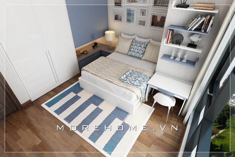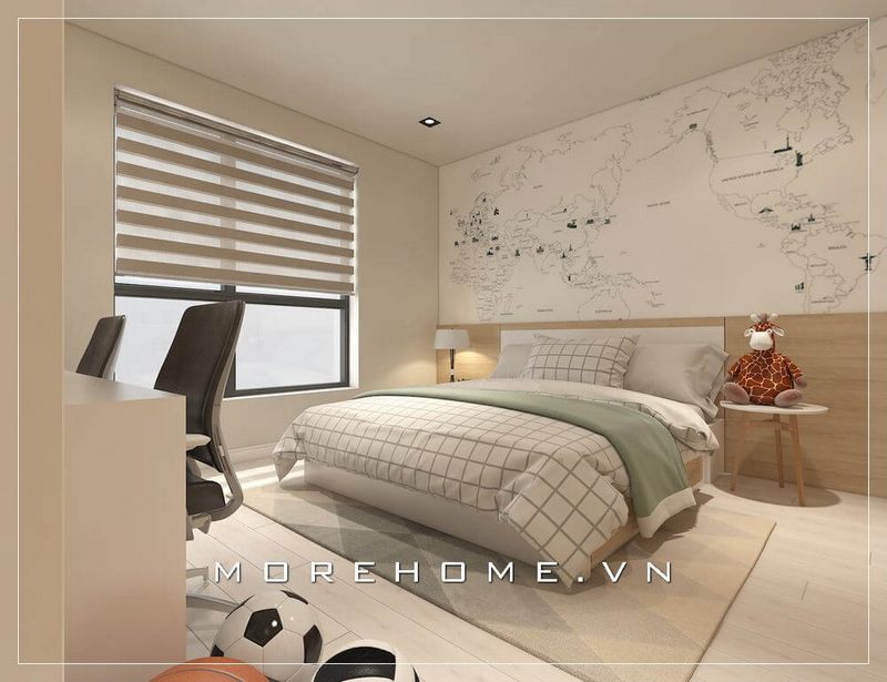 Thiết kế giường ngủ bé trai hiện đại, đơn giản nhưng không kém phần thoải mái, đáp ứng được yêu cầu của con trong quá trình sinh hoạt, nghỉ ngơi
